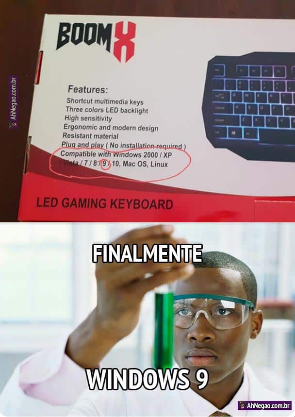 O lendário e misterioso Windows 9. Dizem que as cores são invertidas, e a seta do mouse tem formato de uma faca ensanguentada.