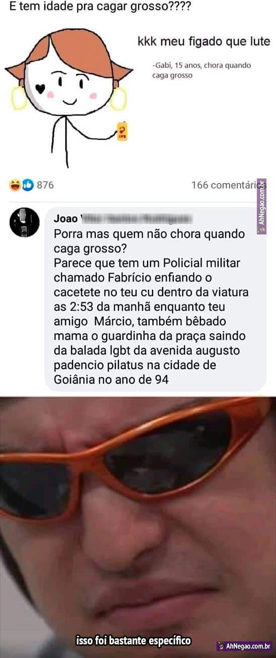 Agora vai ser difícil defecar aquele torolho sem pensar neste personagem aleatório chamado PM FABRÍCIO.