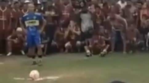Resultado: só um pirralho conseguiu acertar o gol daquela distância. A maioria dos chutes pegou na torcida que estava praticamente dentro da área.