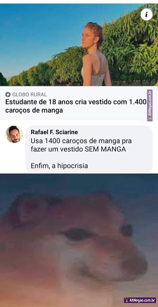 A roupa feita de fruta e sua hipocrisia 08/12/2020 08/12/2020 O vestido de manga sem manga é a nata da contradição. Enfim, pra completar, essa imagem: Tweet TAGS: Vestido sem manga Comentários