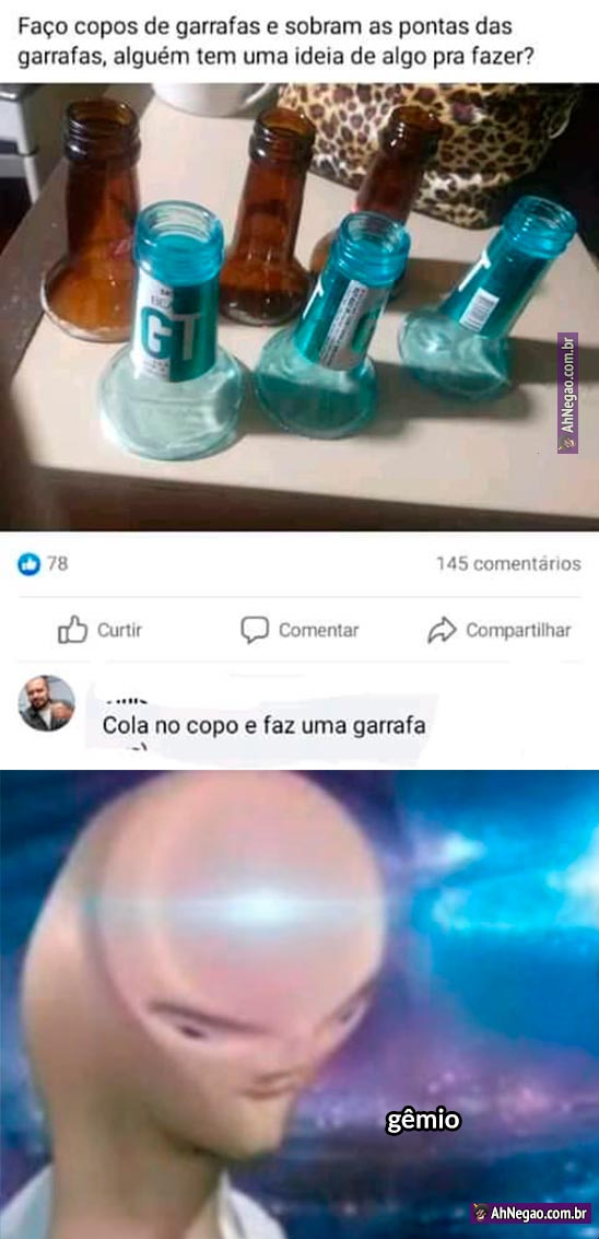 Da série: os grandes gênios dos negócios perdidos na internet 26/01/2021 26/01/2021 Pegue as garrafas, corte as garrafas, cole as garrafas de volta, venda como um tipo de artesanato. STONKS! Tweet TAGS: Biznes Comentários