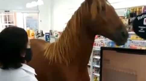 Cavalo invade farmácia pra fazer teste de covid e assusta clientes