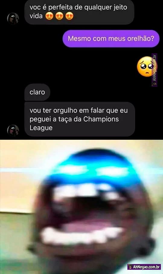 Inclusive um beijo pra minha mulher que também tem orelhinhas de taça da champions e que eu faço questão de levantar como se fosse campeão todo dia.