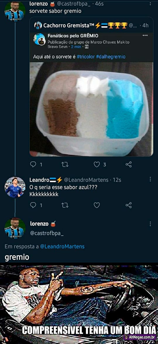 Se podem fazer um sorvete verde sabor WhatsApp, dá pra fazer o sorvete azul sabor Grêmio.