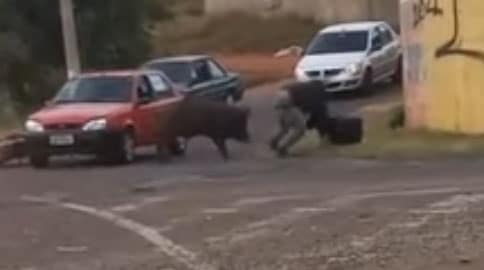 Depois do incidente os motoboys da cidade andam sempre de olho pra não serem surpreendidos pelo porco.