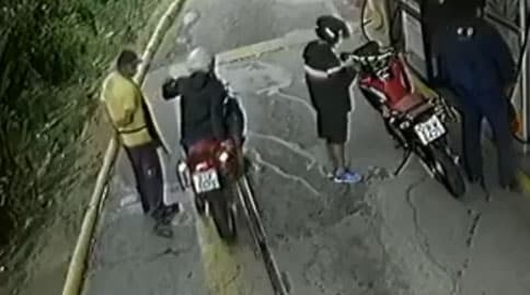 Na moral, não entendi exatamente o que aconteceu, não sei se era assalto ou treta pessoal, só sei que o cara da segunda moto escolheu o pior lugar pra passar…