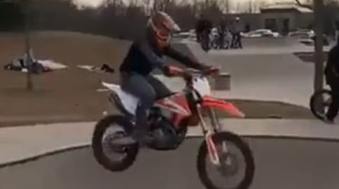 Os cara tão levando tudo que é tipo de veículo motorizado e criando o caos no skate park.