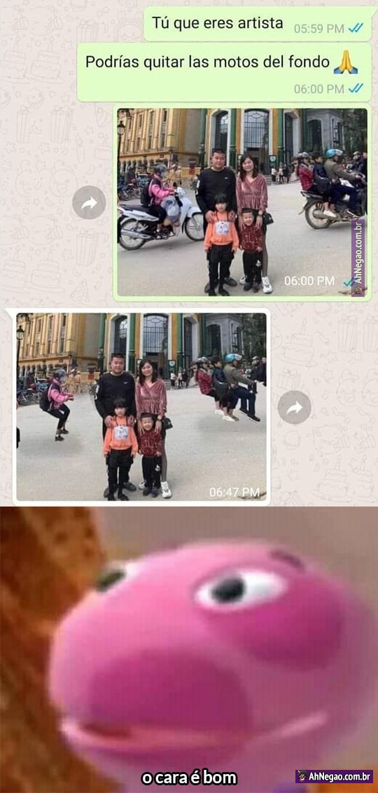 Na internet é assim: se você pede pra alguém editar uma foto, ou acontece algo assim, ou a pessoa edita perfeitamente e insere algo constrangedor na foto que só será perceptível depois que a foto estiver num porta-retratos na casa da sua mãe.