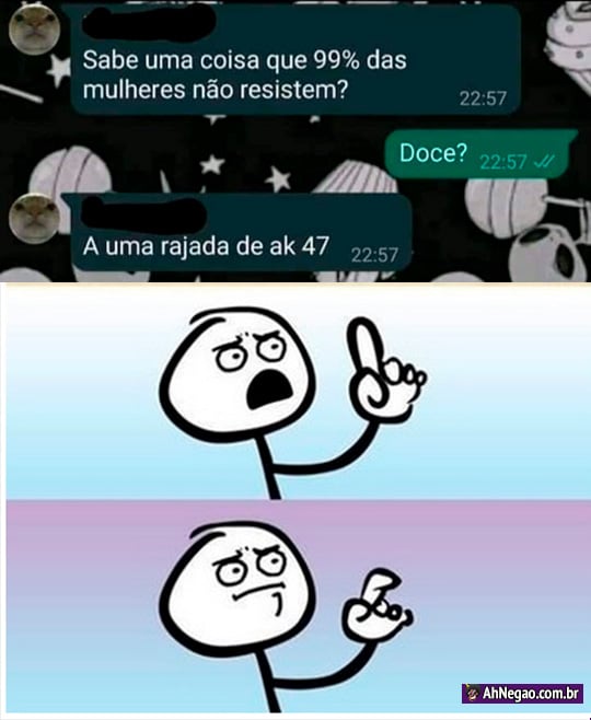 Só queria muito saber quem são as mulheres que fazem parte do 1% que resistiriam a uma metralhada.