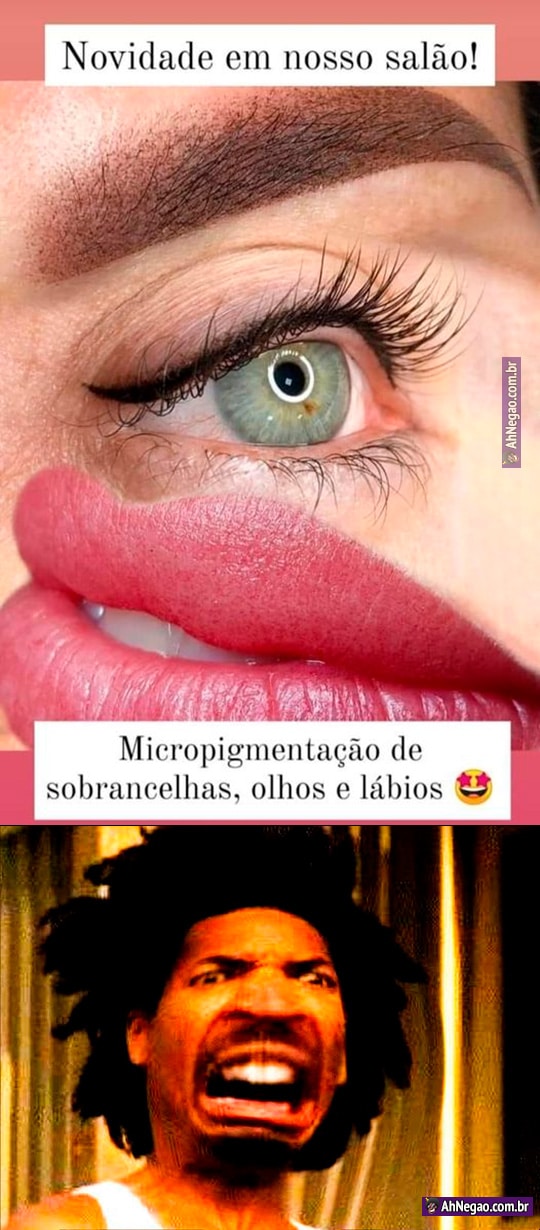 Podiam ser duas imagens separadas, mas não, alguém juntou tudo como se fosse um monstro de um olho só e sem nariz.
