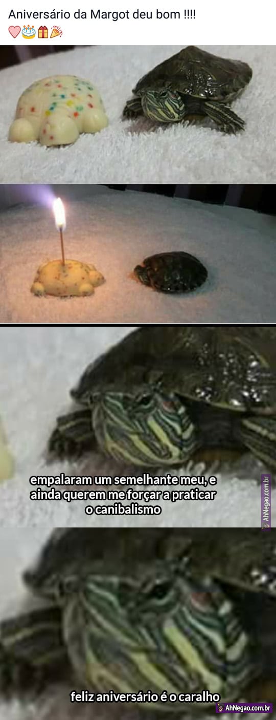 Imagina uma festa surpresa em que o bolo tem exatamente o seu formato. Seria meio esquisito, mas acharam que pra tartaruga estaria de boas.
