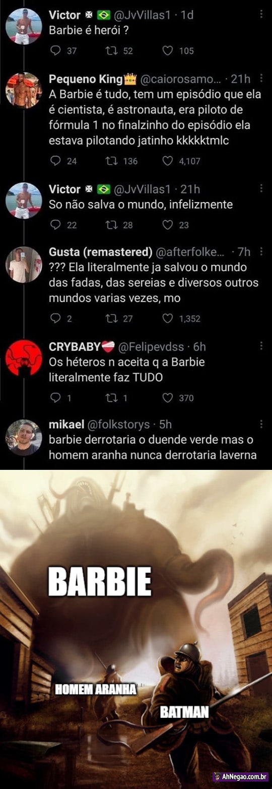 Não quero nem ver quando a discussão evoluir para BARBIE X GOKU, aí o bicho pega…