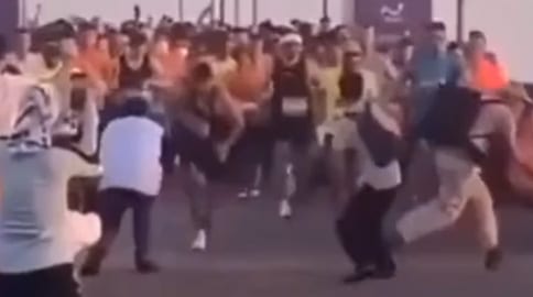 Os corredores precisam literalmente adivinhar o caminho ou se guiar pelos gritos da galera.