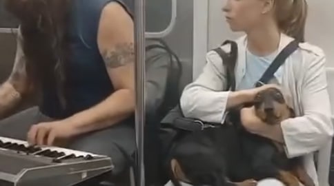 Pela cara do cachorro, as mãos dela não foram suficiente pra abafar todo o som…