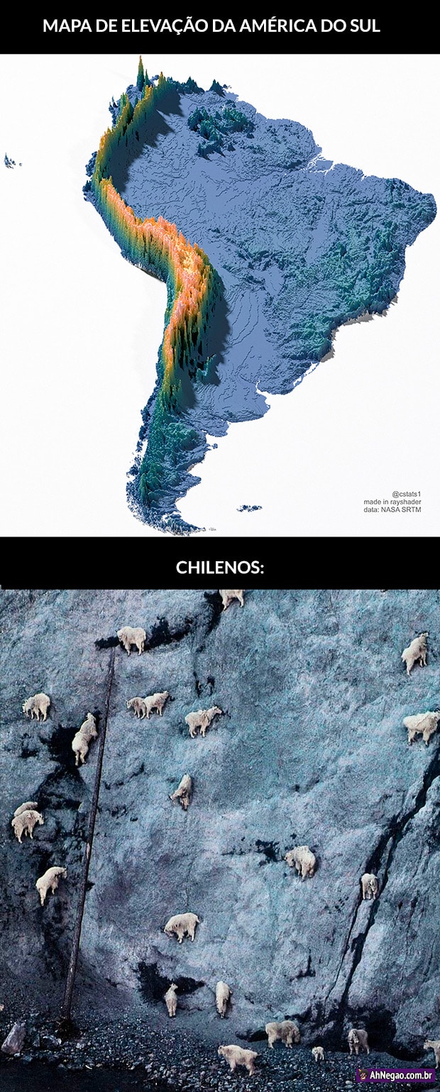 Eu sabia que o Chile era o bacon da América do Sul mas não sabia que ele tinham que se amarrar na montanha pra não cair no mar…