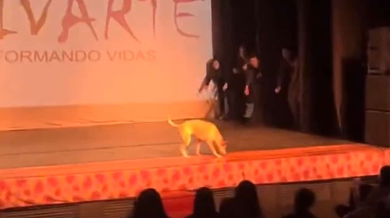 O cachorro subiu no palco, tentou entrar na coreografia, errou tudo, mas logo depois viu o palco liberado e pensou: É AGORA QUE EU VIRO LENDA!