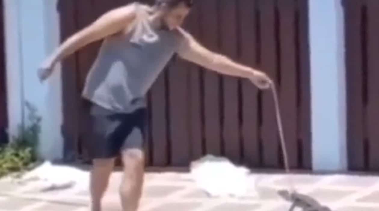 Apesar de não aparecer nas imagens, o cara foi brutalmente surrado pelo lagarto que fez questão de mostrar o quanto estava indignado.