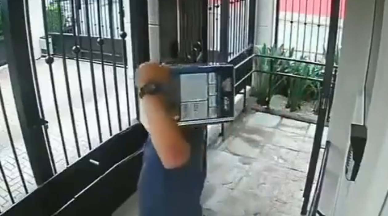 Sem querer ele deu início à reforma da entrada do condomínio. A pintura já tá 50% pronta, só espalhar o resto.
