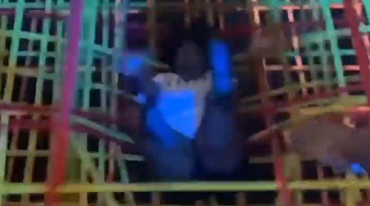 A pessoa pode até descer pelo labirinto de elásticos, mas precisa deixar uma oferenda na entrada…