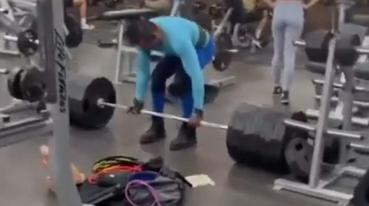 Enquanto isso, todos os 5 instrutores da academia nem viram esse absurdo pois estão ajudando uma mina bonita a amarrar corretamente o tênis.