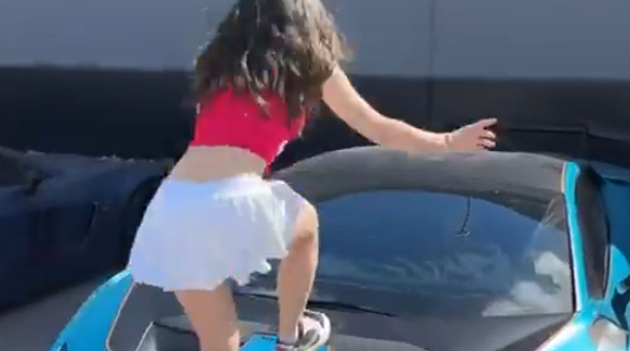 Não sei como ela manteve a empolgação mesmo vendo o dono do carro chorar enquanto filmava…