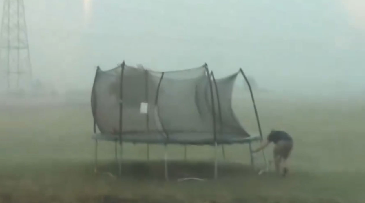 O cara que tentou lutar contra o vento para salvar sua cama elástica