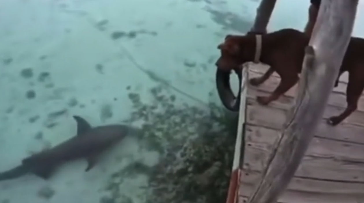 O tubarão pode ter vantagem na água, mas os cachorros têm a força da amizade.