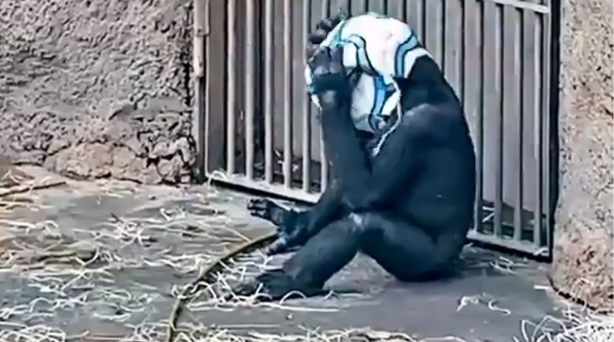 Uma bola furada pras pessoas não serve pra nada, mas pra um gorila criativo pode virar o acessório mais inovador da história.