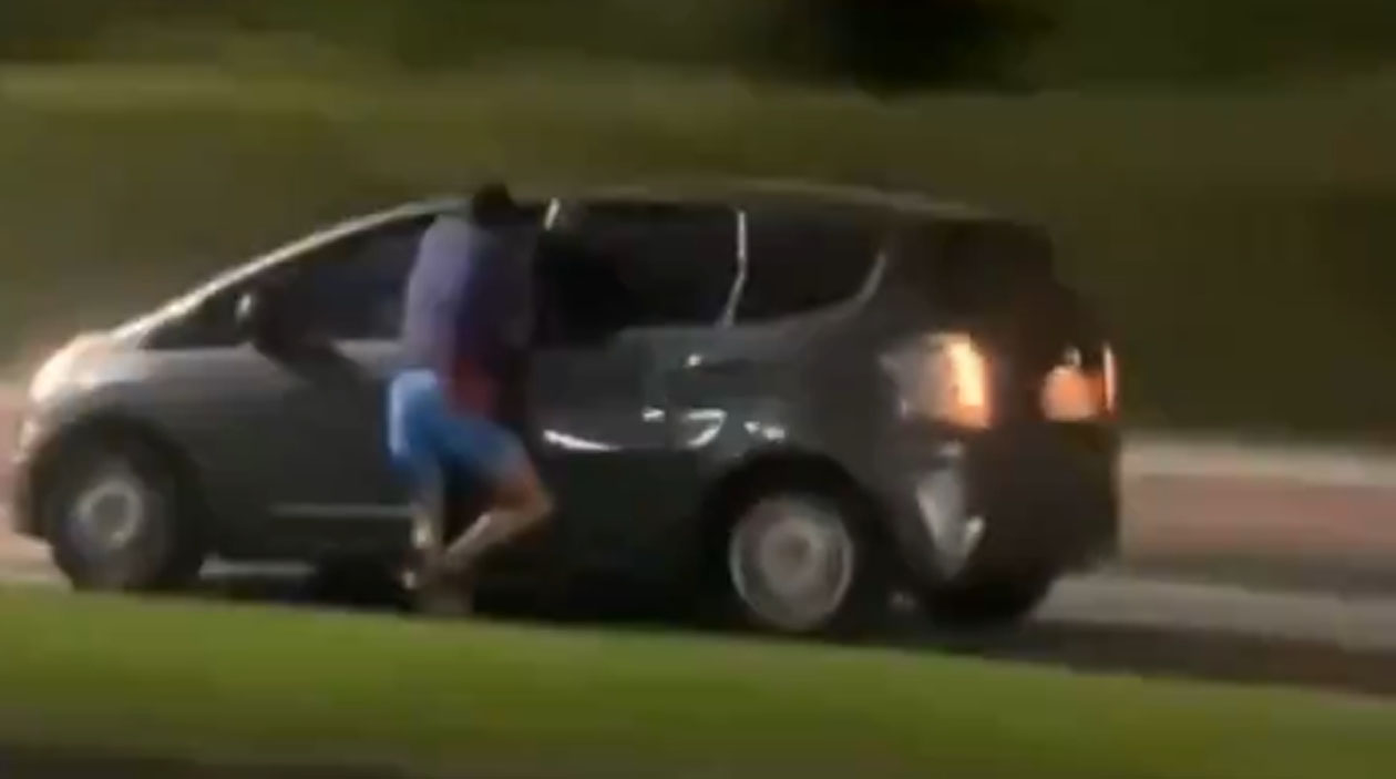 Aqui temos o clássico assaltante que mete a mão na janela do carro pra pegar seu celular. Nesse caso a janela tava fechando bem na hora e o braço do cara ficou preso. O motorista apenas seguiu seus instintos.