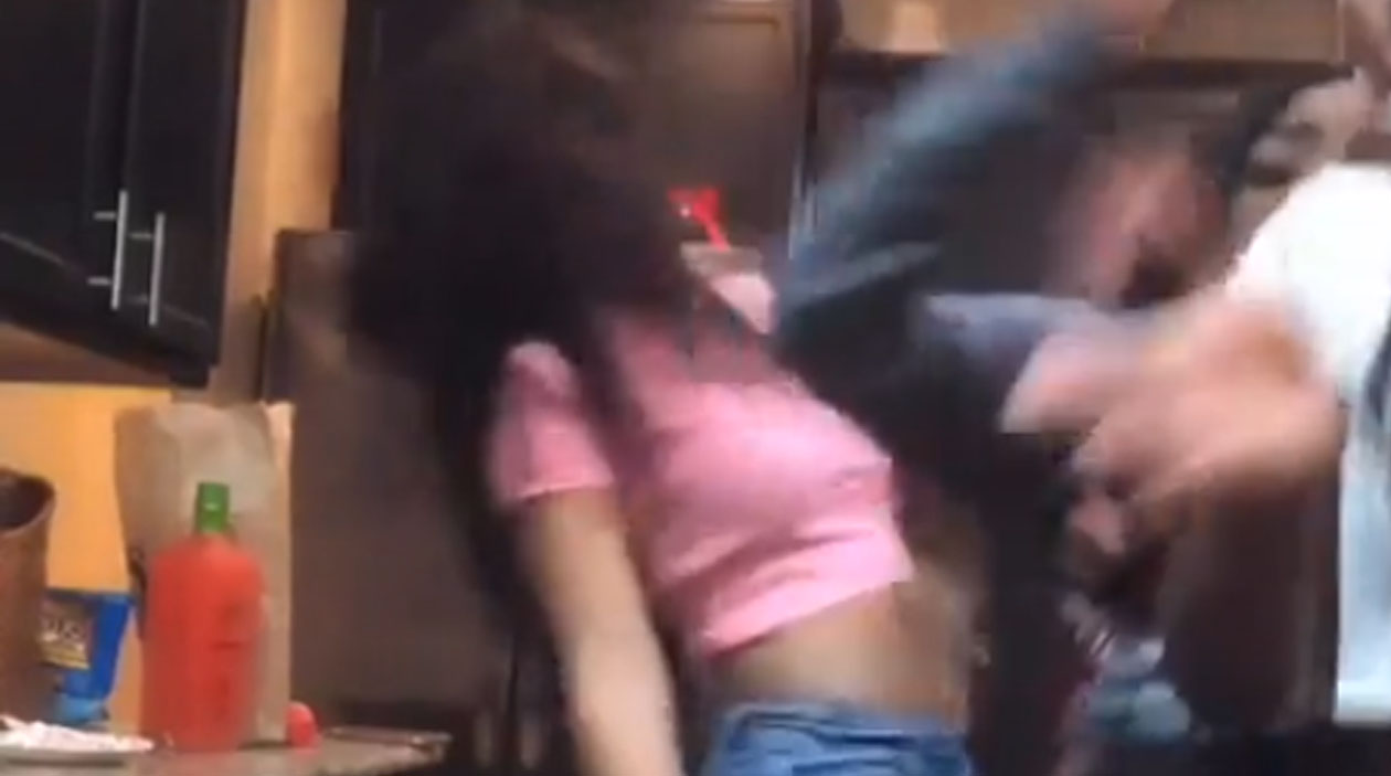 Não basta levar um soco na cara, ainda teve que ficar pendurada pelo rego de forma humilhante.