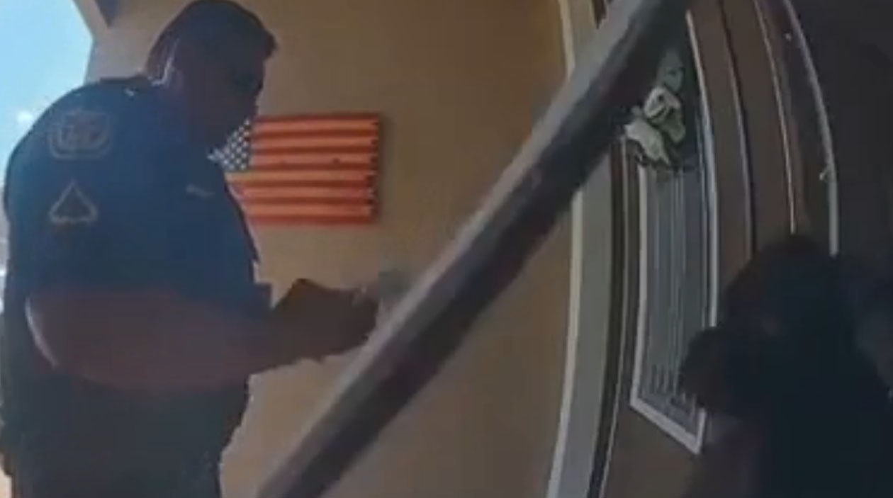 Contra o carteiro ou o entregador o cachorro encara de frente, late, impõe respeito, mas foi só bater a polícia que ele arrombou a própria porta pra escapar.