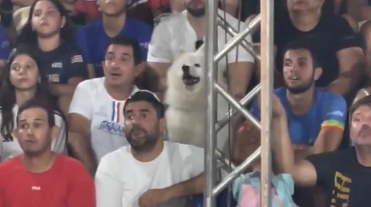 O dog não entendeu nada sobre o jogo, nem sabe quem tá ganhando, mas simplesmente adorou a bolinha…