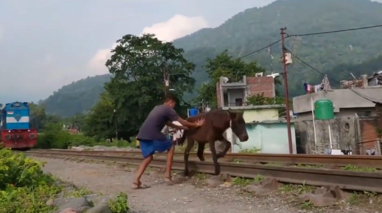 Até o maquinista do trem parece conhecer o burro. Sabe que ele sempre tenta ter uma morte épica e precisa diminuir pra não atropelar o coitado.
