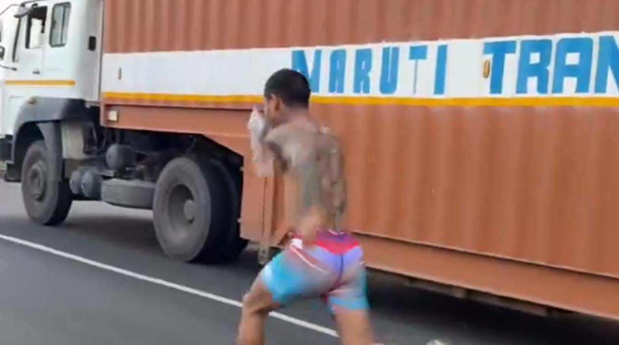 O cara literalmente correndo atrás de seu sonho, mesmo sabendo que o caminhão não cansa, mas ele sim.