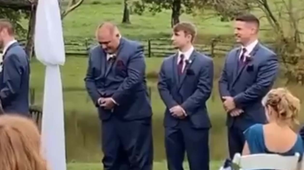 A física não é capaz de explicar como a calça de alguém cai tão perfeitamente sem nenhum movimento. Esse cara estava destinado a se humilhar no casamento do jeito que fosse.