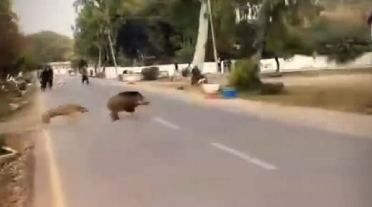 O javali que tentou passar pelo parque dos cachorros e se arrependeu amargamente