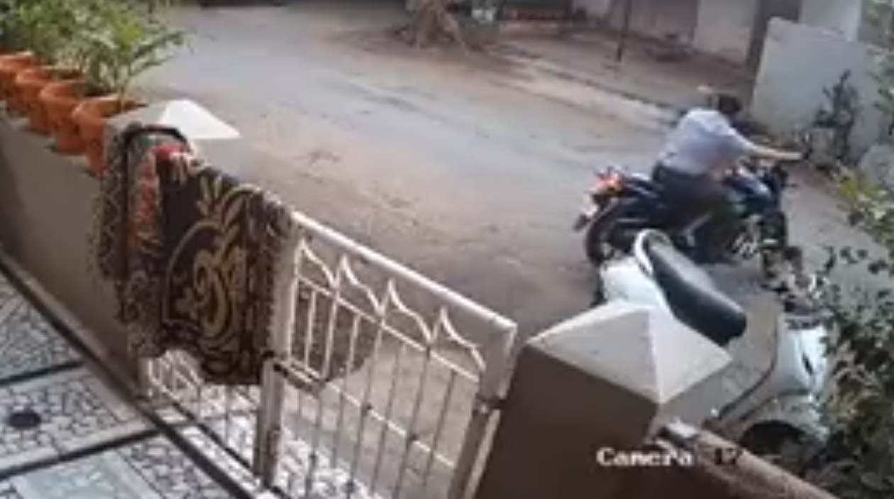 Não dá pra dizer que foi a moto que causou esse estrago todo, mas é muito suspeito que tenha acontecido na mesma hora.