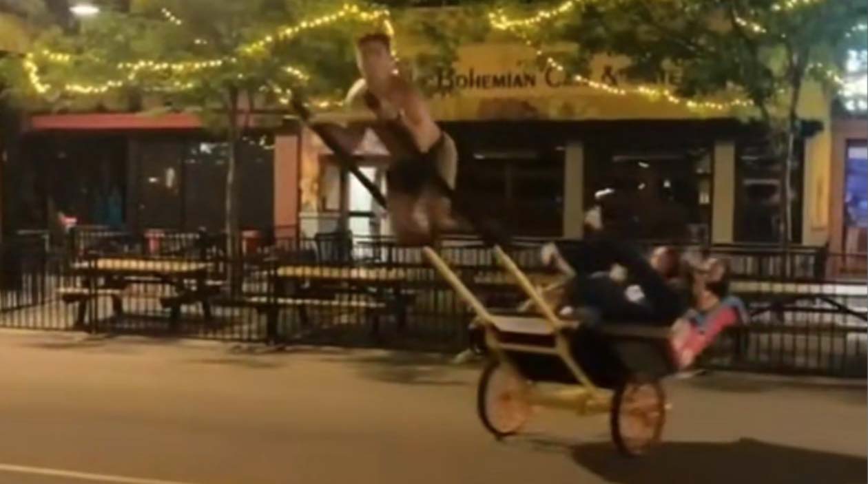 Aposto que esse cara acertou todas as vezes que ele tentou essas acrobacias, mas logo nesse dia, com duas câmeras filmando, ele falhou.