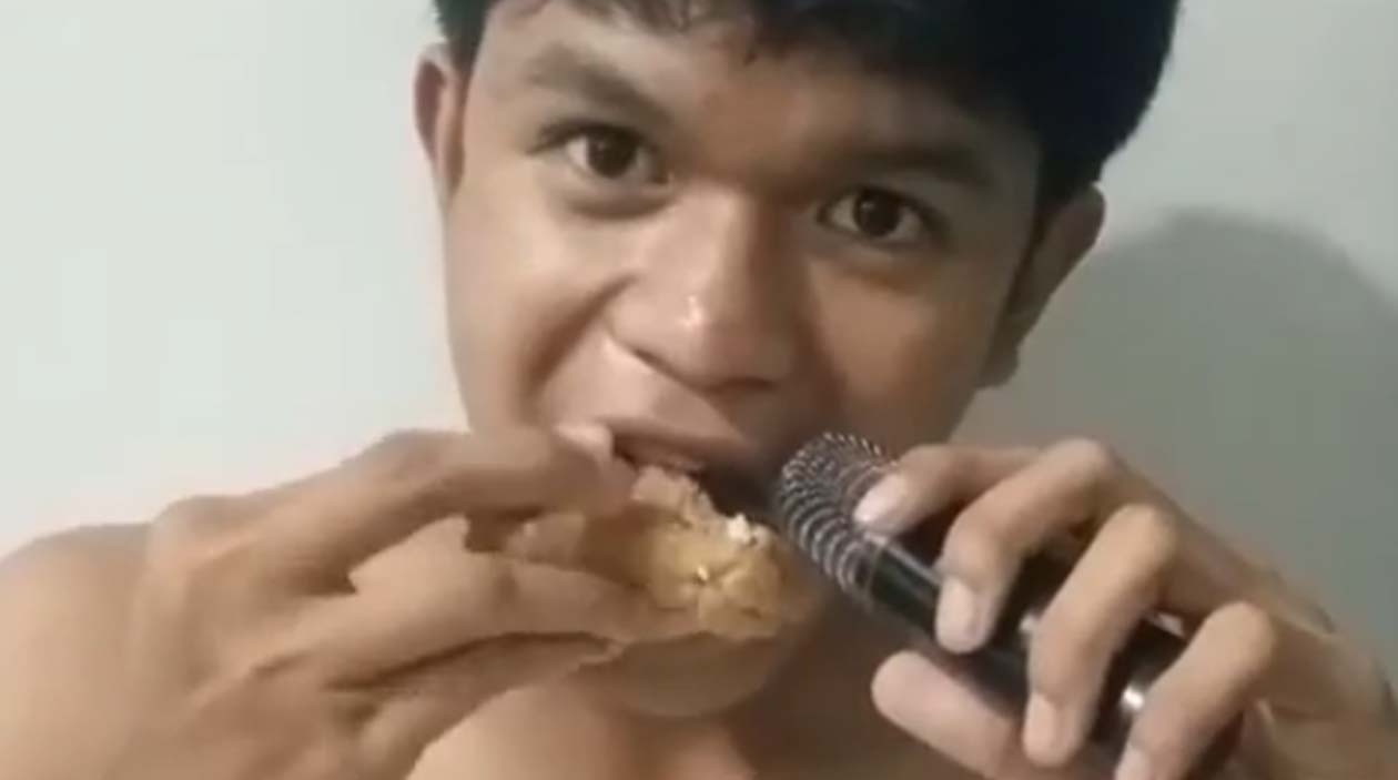 Não precisava nem do microfone, o som de comida crocante atrai gatos num raio de 50 metros, mesmo que você não tenha gato…