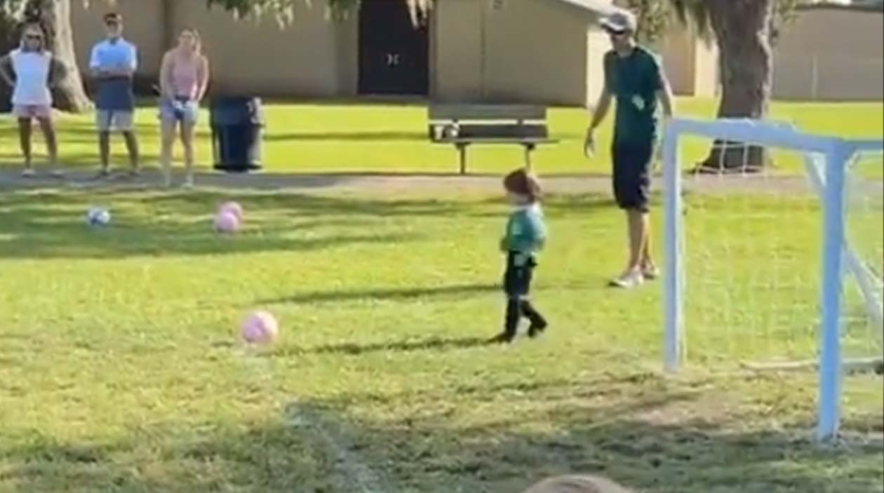 Só pelo tamanho do gol dá pra ver que a categoria aqui é praticamente pra bebês, e é justamente nessa categoria que os pais conseguem os melhores vídeos, e vale pra qualquer esporte.