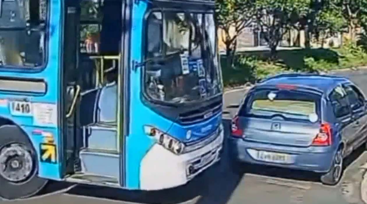 O cara parou o carro na esquina, ficou dentro do carro, viu que o busão tava pedindo passagem, ignorou completamente como se estivesse certo.