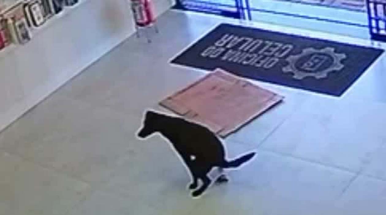 Não bastava largar o bostão no chão limpinho, ele precisava incrementar seu trabalho, deixando um rastro fecal por toda a loja…