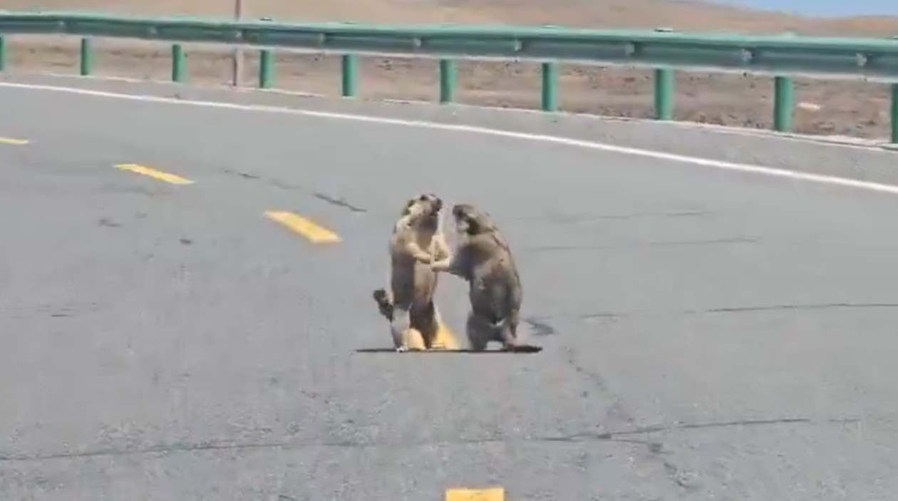 A estrada toda parou e ninguém pode buzinar ou reclamar enquanto as marmotas estiverem saindo no soco. É a regra…