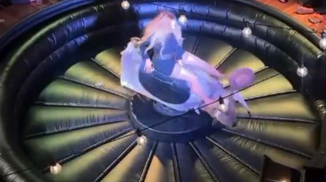 A parte mais difícil é sobreviver ao touro mecânico sem cair. Ninguém espera que haja um vão da morte escondido na extremidade…