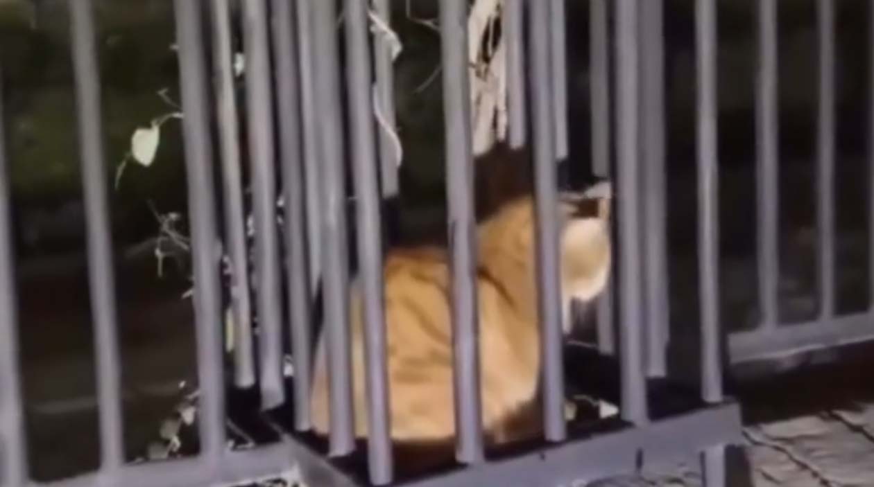 O esforço para salvar um gato que ficou preso entre as grades