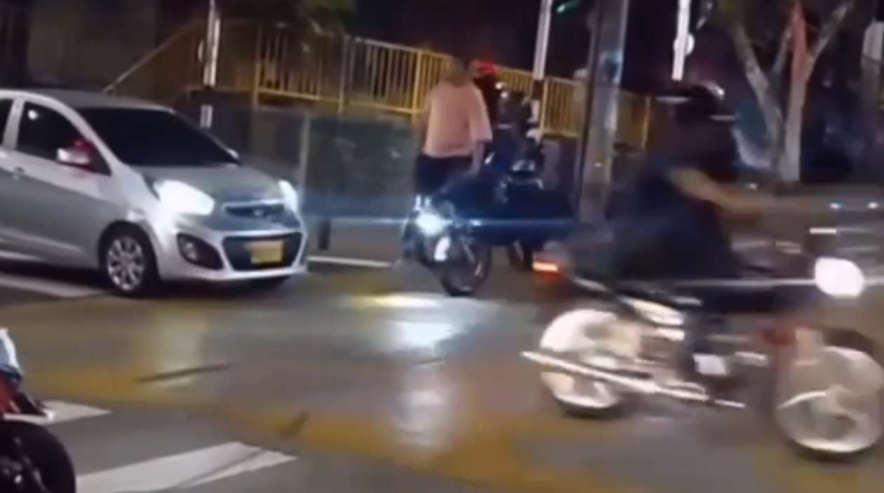 Já vi gente descer da garupa da moto pra ficar na faixa e forçar a parada dos carros, mas como ele tava sozinho precisou inovar.