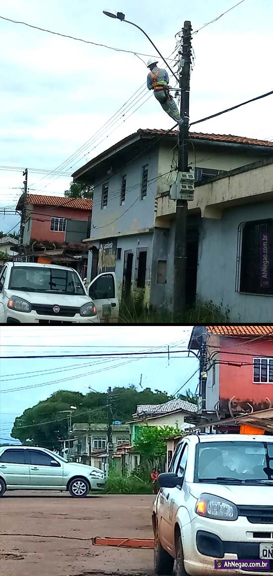 Consumidor derruba escada de técnico que ia cortar sua luz e deixa ele preso no poste