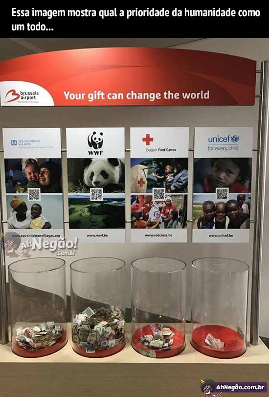 Parece que a escolha já foi feita. Crianças podem passar fome mas os pandas precisam ser salvos de qualquer forma pois são fofos e dão cambalhota sem querer.