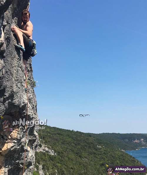Só eu imaginei o homem invisível caindo do penhasco? Tipo, ele pelado porém só de óculos.