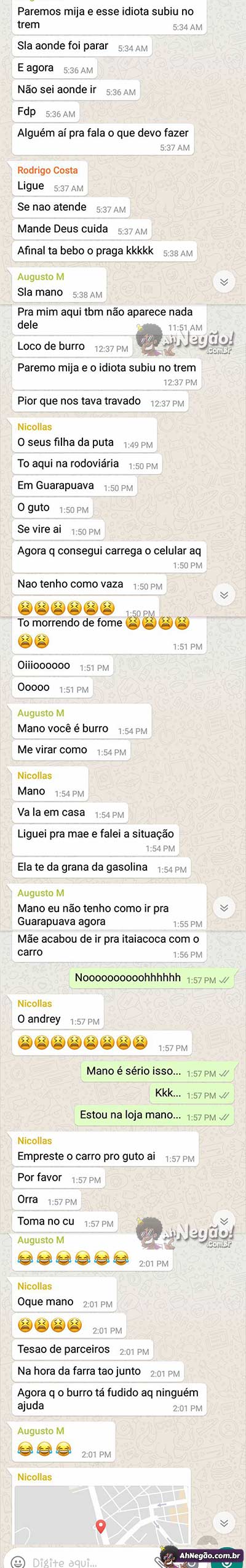 Parça é parça, se tava junto na hora da cagada, tem que ajudar a limpar. O cara foi parar em outra cidade no meio do rolê, então cabe ao pessoal do rolê trazer o cara de volta. São as regras do rolê.